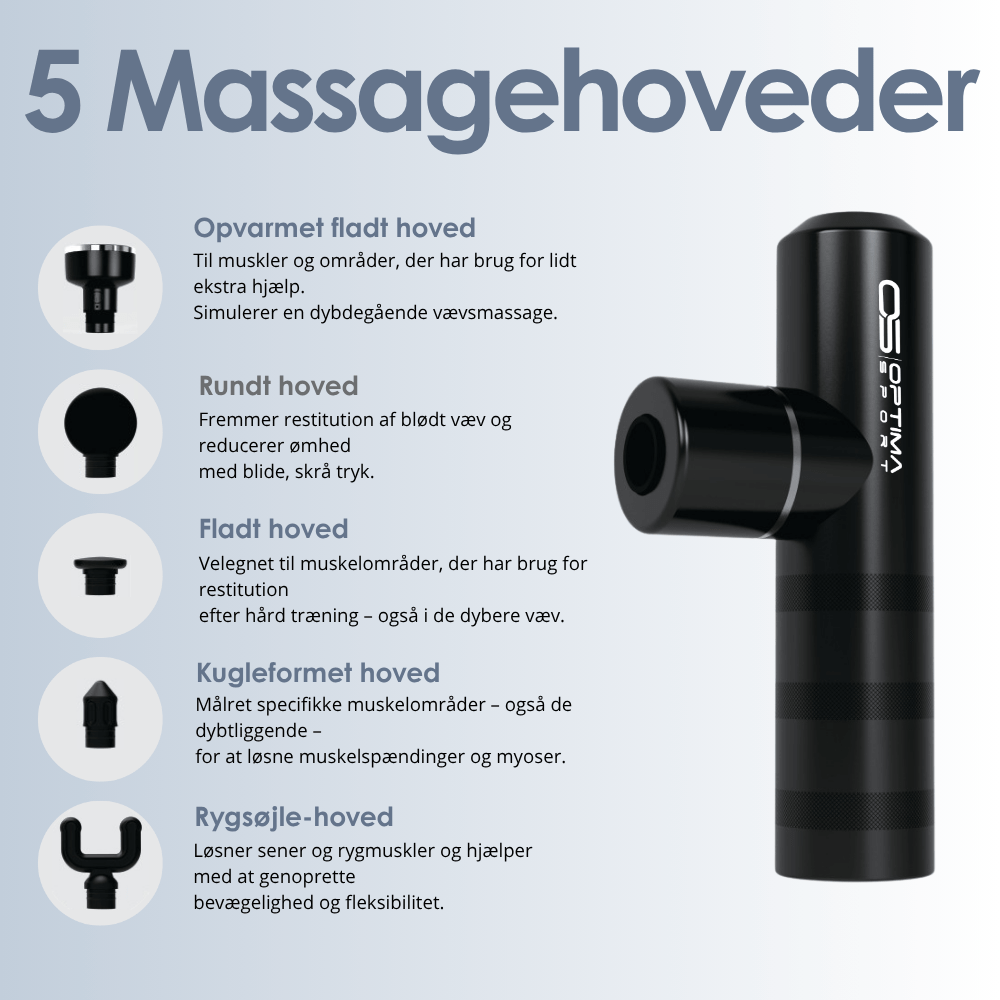 Optima Sport Mini Massagepistol kombinerer dybdegående massage med målrettet varmebehandling. Ideel til dig, der træner regelmæssigt og ønsker hurtigere restitution – eller dig, der har brug for lindring efter en lang arbejdsdag.
