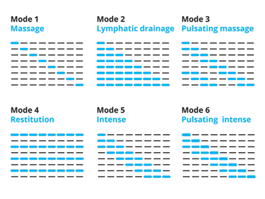 Når du køber vores komplette sæt af Recovery Boots, modtager du en digital kontrolenhed, der gør det nemt at vælge din behandling. På kontrolenheden kan du vælge, hvilket program du vil have, hvor længe behandlingen skal vare, hvordan trykket skal være, og meget mere.