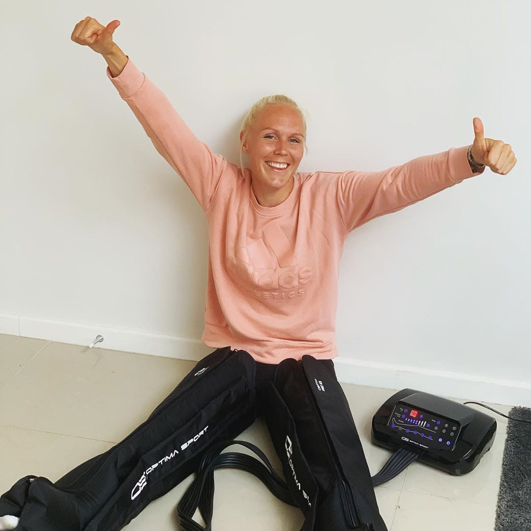 Sådan anvender Amalie Testrup Optima Sport Recovery Boots i sin daglige træning som professionel fodboldspiller.