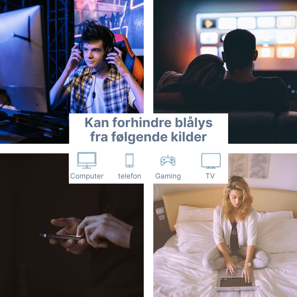 Forskning har vist, at blåt lys fra elektroniske enheder kan forstyrre produktionen af søvnhormonet melatonin, hvilket kan påvirke din døgnrytme og søvnkvalitet. Dette kan være problematisk hvis du ønsker en optimal søvn og restitution som kan være afgørende for din præstationsevne.