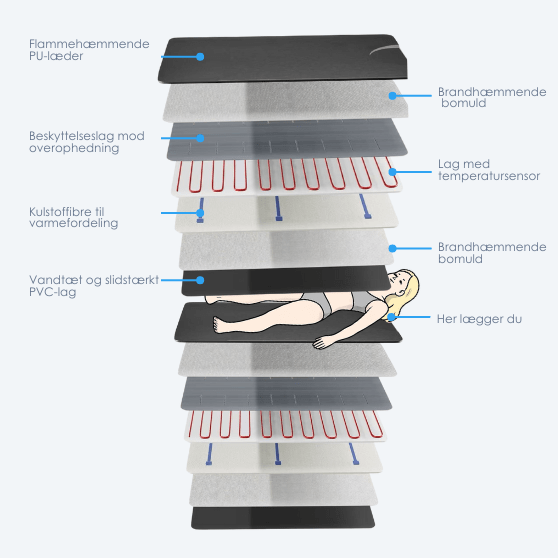 - Jævn varmefordeling Ensartet varme over hele kroppen for optimal afslapning og restitution.
