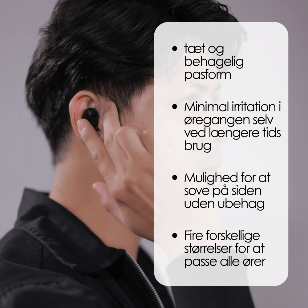 Komfortable ørepropper er afgørende, når du bruger dem gennem hele natten, og vores in-ear design sikrer: